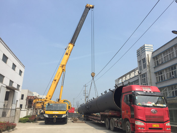 我公司最新制作的脫異丁烷塔,長達60.3米,容積196立方,凈重63500千克,刷新了我公司實際項目制作最長塔器記錄,在設備、廠房大門均完好無損的情況下,成功竣工并裝運出車間。